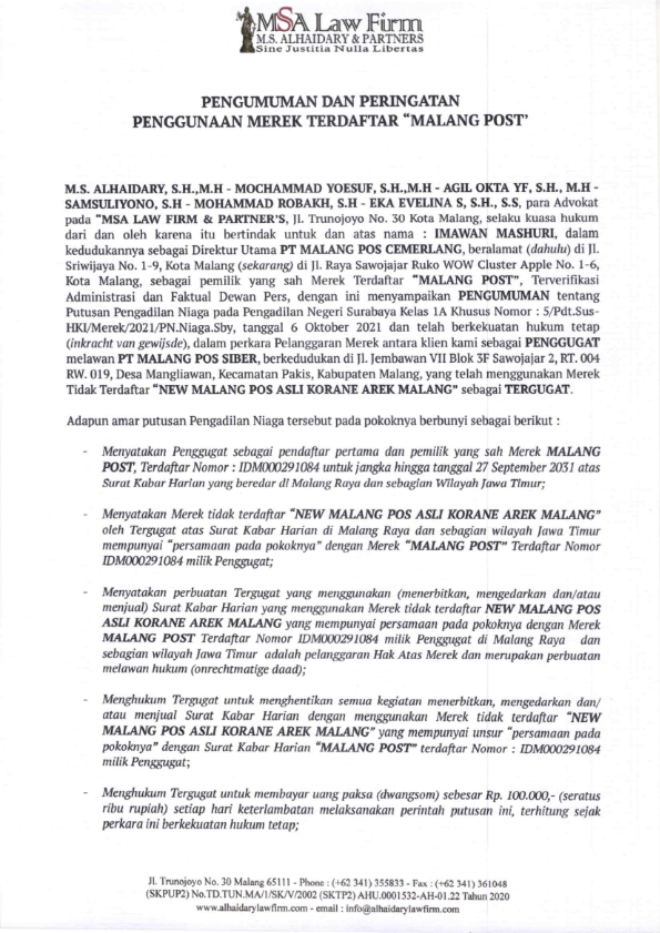 PENGUMUMAN DAN PERINGATAN PENGGUNAAN MEREK TERDAFfAR “MALANG POST’Luwuk PostJumat, 4 Februari 2022Berita Luwukpost.id - PENGUMUMAN DAN PERINGATAN PENGGUNAAN MEREK TERDAFfAR “MALANG POST’ PENGUMUMAN DAN PERINGATAN PENGGUNAAN MEREK TERDAFfAR “MALANG POST’ PENGUMUMAN DAN PERINGATAN PENGGUNAAN MEREK TERDAFfAR “MALANG POST’ BACA Gerak Jalan Kategori Umum Paling Dinanti Berita TerkaitKarang Taruna Banggai Agendakan Penanaman Mangrove di Lingkar Tambang NikelFKIP Unismuh Luwuk Jalin Kerja Sama dengan FOK UNGDisdikbud Banggai Resmi Terapkan Lima Hari Sekolah Mulai Februari 2026Kabupaten Banggai Capai UHC, Hampir Seluruh Warga Terlindungi JKN32 Mahasiswa FPP Unismuh Ikuti PKP-PPLSeratus Koperasi Terancam Dibekukan
