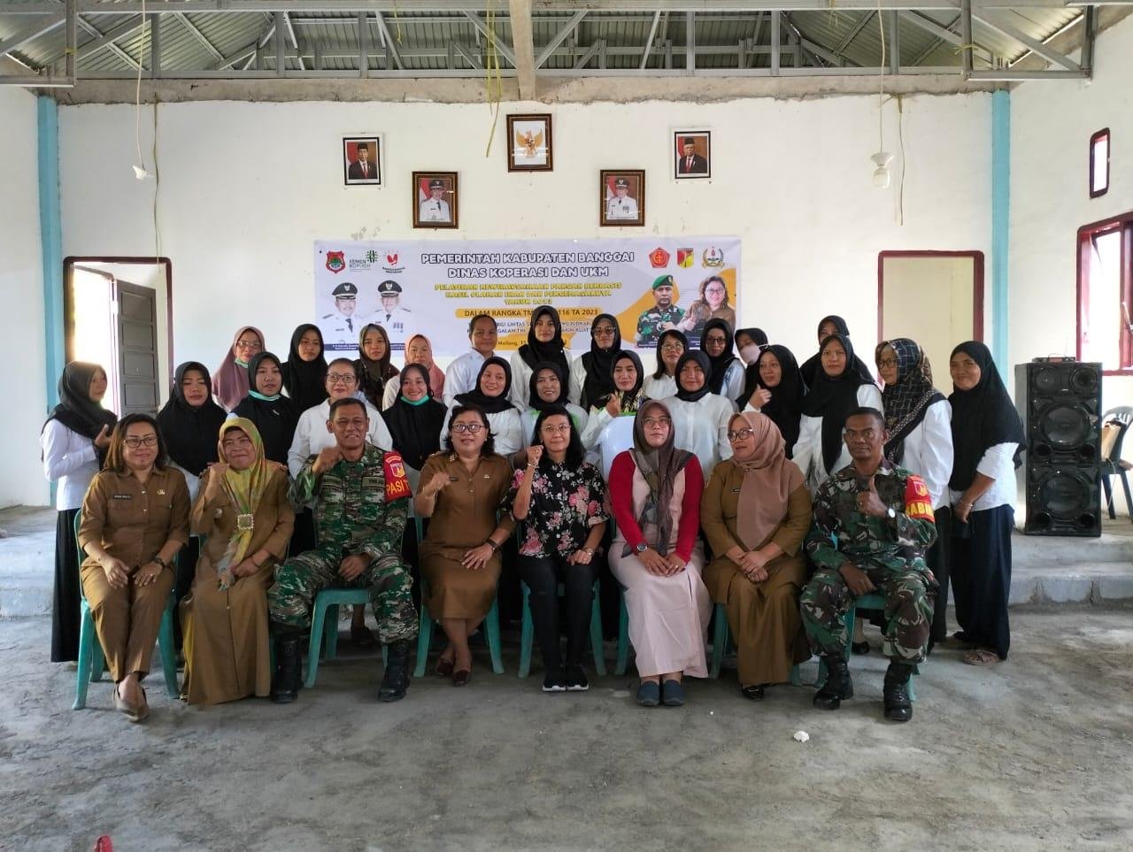 Diskopumkm bersinergi bersama TNI melaksanakan kegiatan Pelatihan Kewirausahaan Pangan berbasis hasil olahan ikan dan pengemasan bagi para pelaku UMKM di Kecamatan Moilong pada Senin (15/5/2023).