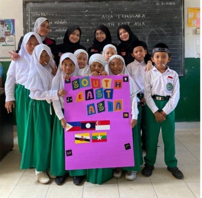 Pada kelas 1-2 kami memperkenalkan kepada mereka negara-negara yang ada di kawasan Asia Tenggara atau tetangga dari Indonesia. kemudian di kelas 3-4 kami mengenalkan kepada mereka negara-negara apa saja yang terletak di kawasan Asia Timur dan Timur Tengah. Dan di kelas 5-6 kami memperkenalkan negara-negara yang ada di kawasan Eropa. Yang mana setiap kawasan yang kami kenalkan kepada para siswa terdiri dari 5 negara.