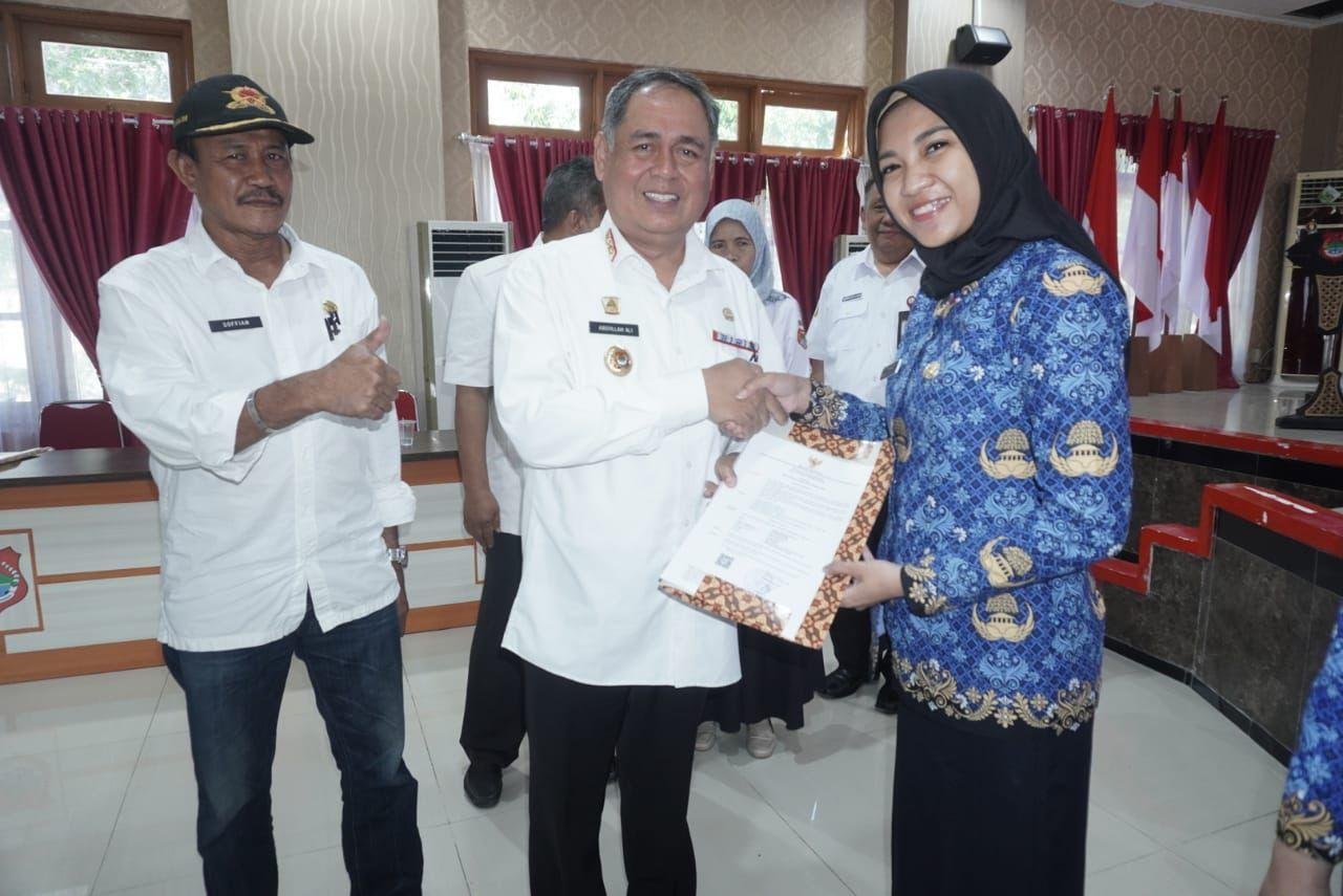 Penyerahan SK Pengangkatan PNS Tahun 2023 ini dilakukan oleh Sekretaris Daerah Kabupaten Banggai, Ir. Abdullah Ali, M.Si, mewakili Bupati Banggai.