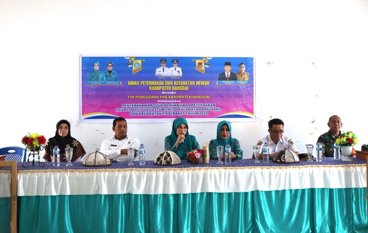 LUWUK, LUWUK POST – Dalam Upaya Intervensi Penurunan Stunting, Dinas Peternakan dan Kesehatan Hewan (Disnakeswan) Kabupaten Banggai bersama Tim Penggerak PKK Kabupaten Banggai menyerahkan Produk Olahan Hasil Peternakan pada Lokasi Fokus Stunting di Kecamatan Pagimana.