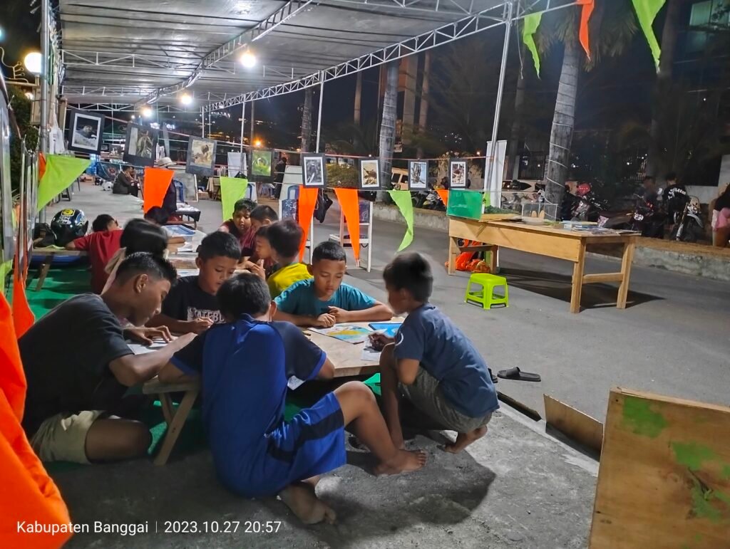 Kampanye puisi penyu itu berlangsung di kompleks jalur II atau eks Pasar Malam, Kelurahan Luwuk, Banggai, Provinsi Sulteng, pada Jumat malam, 27 Oktober 2023.