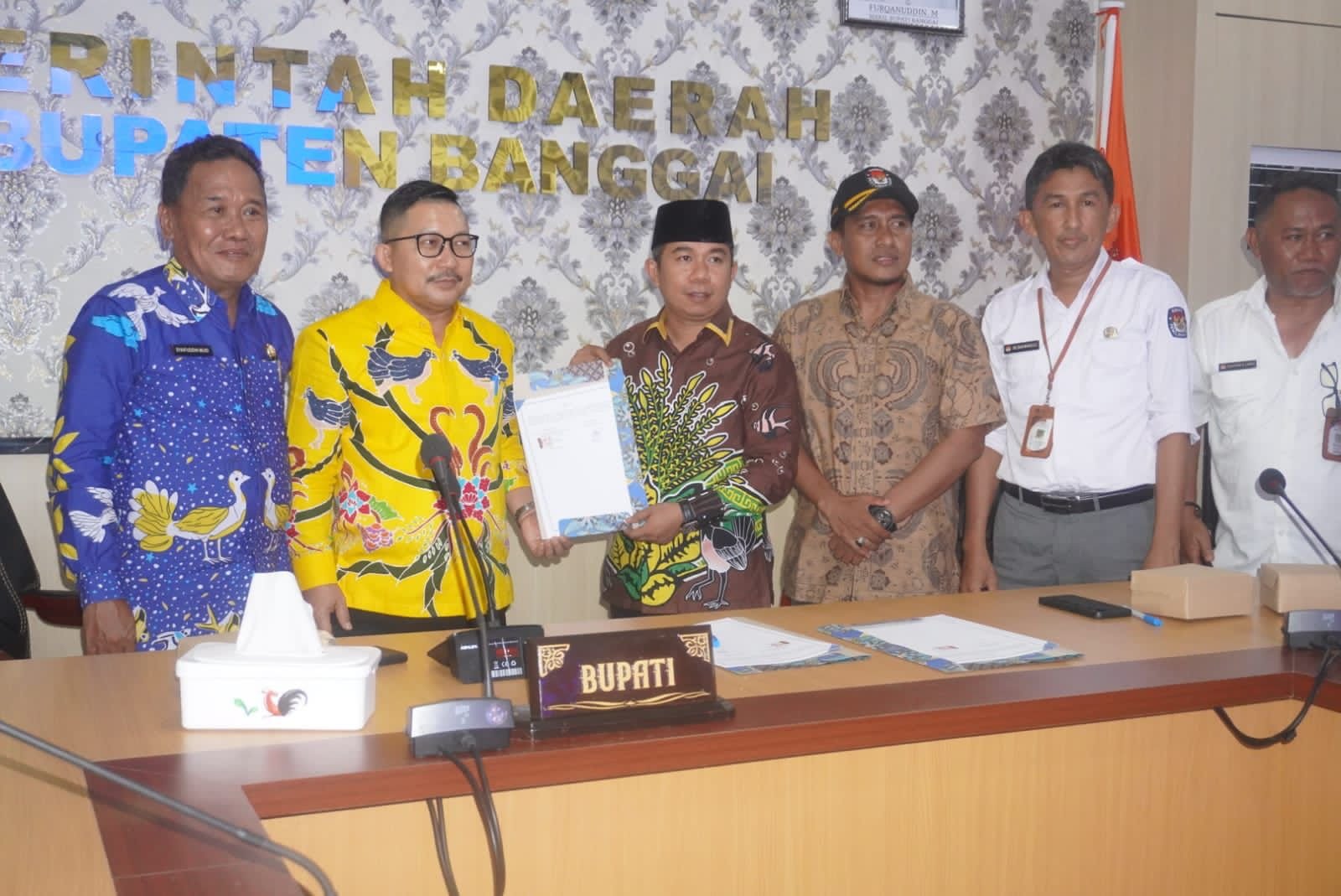 Penandatanganan dilakukan oleh Bupati Banggai Ir. H. Amirudin dan Ketua KPU Kabupaten Banggai di ruang Rapat Umum Kantor Bupati Banggai, Kamis (9/11/2023).