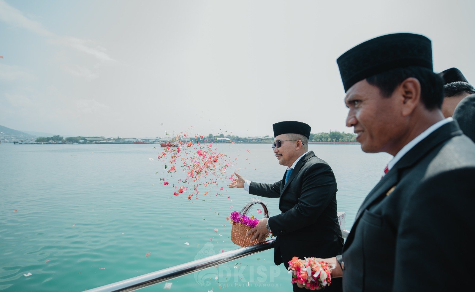 Dengan penuh penghargaan, Bupati Banggai melakukan penaburan bunga di laut sebagai simbol penghormatan kepada arwah para pahlawan yang telah gugur.