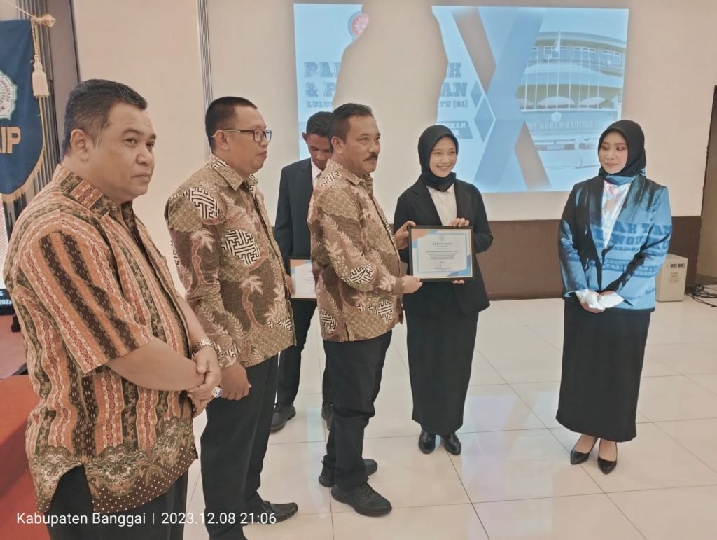 Pemberian piagam penghargaan itu diberikan dalam momen malam ramah tamah dan pengukuhan lulusan sarjana strata satu (S1) di Ballroom Santika Luwuk, Jumat malam, 9 Desember 2023.