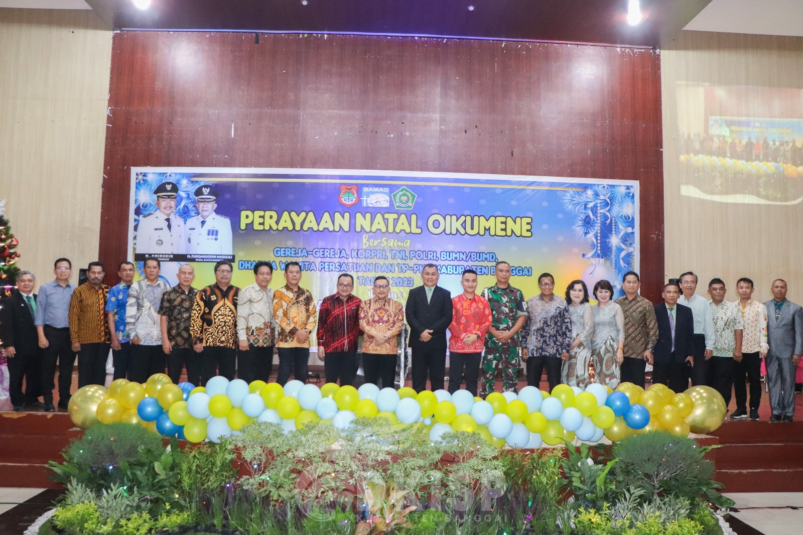 LUWUK, LUWUK POST — Bupati Banggai, Ir. H. Amirudin, MM., AIFO menghadiri Perayaan Natal Oikumene bersama Gereja-gereja, Korpri, TNI, Polri, BUMN/BUMD, Dharma Wanita Persatuan dan TP-PKK Kabupaten Banggai, pada Kamis (28/12/2023).