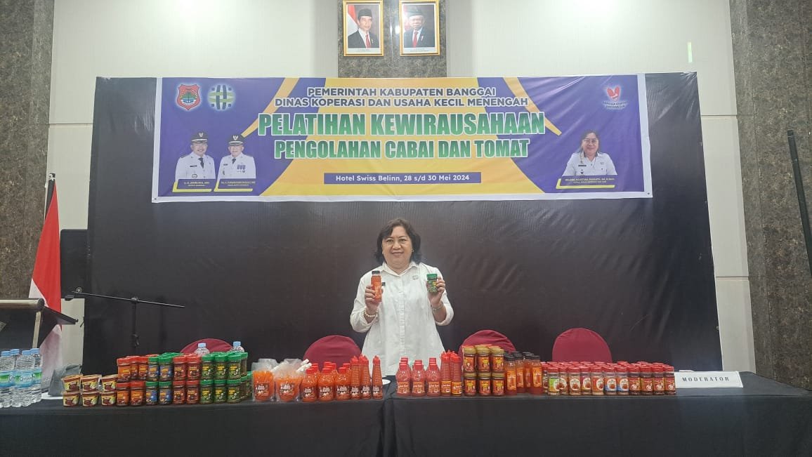 LUWUK, ( luwukpost.id ) – Memasuki hari ke 2 Pelatihan Kewirausahaan yang dilaksanakan Dinas Koperasi dan UKM (Dinas KUKM) Kabupaten Banggai, para pelaku UMKM binaan yang menjadi peserta pelatihan telah berhasil memproduksi 8 jenis olahan cabai dan tomat.