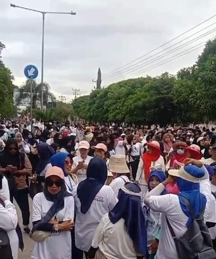 “Kami membagikan 36.505 kupon kepada peserta yang semuanya adalah perempuan” beber Arnila H.Ali ketua Panitia Jalan Sehat. Anggota DPRD Provinsi yang baru terpilih ini juga menjelaskan bahwa awalnya panitia hanya menyiapkan 20ribu kupon undian lengkap dengan kostum dan tas kecil sebagai cenderamata. “Namun karna antusias masyarakat yang terus membludak, akhirnya kami tambah kuponnya. Tapi mohon maaf kami tidak sempat lagi menyiapkan kaos”. Jelasnya.