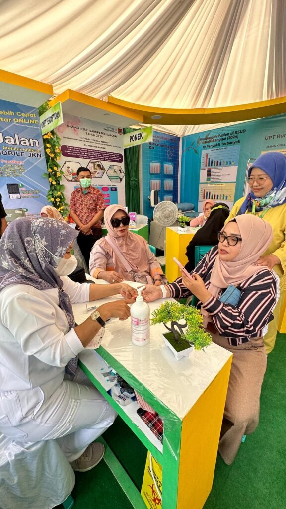 Di tempat yang sama, dr. Budiyanto Uda’a, Sp. K.F.R, selaku koordinator stand pameran RSUD Kabupaten Banggai, mengungkapkan bahwa pelayanan yang diberikan selama BGE 2024 ini semuanya gratis, yang terdiri dari pengecekan keaktifan BPJS melalui NIK/ KTP, informasi tentang Antrian Online, informasi tentang inovasi PESAN MAMA, Pelayanan USG bagi Ibu Hamil, Konsultasi dengan dokter spesialis, pemeriksaan tekanan darah, pemeriksaan gula darah, informasi tentang dokumen SABIT bagi bayi yg lahir di RSUD Kab. Banggai, informasi tentang inovasi-inovasi dan jenis pelayanan yang ada di RSUD Kabupaten Banggai, serta ada doorprize menarik setiap malamnya
