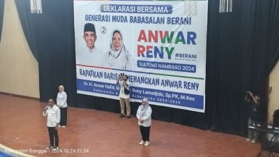 Mereka kini hadir di tengah ribuan pemuda Banggai, dalam agenda deklarasi bersama “Generasi Muda Babasalan Berani”, di Gedung Graha Dongkalan,Banggai, Kecamatan Luwuk, pada Kamis malam, 24 Oktober 2024.