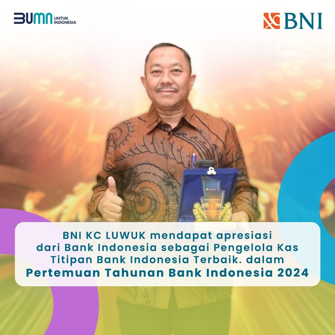 Penghargaan tersebut diterima langsung oleh Pemimpin BNI Kantor Cabang Luwuk, Satomy Dungga, sebagai pengakuan atas kontribusi cabang dalam memastikan ketersediaan uang tunai yang berkualitas serta mendukung kelancaran transaksi ekonomi di Kabupaten Luwuk Banggai, Banggai Laut dan Banggai Kepulauan