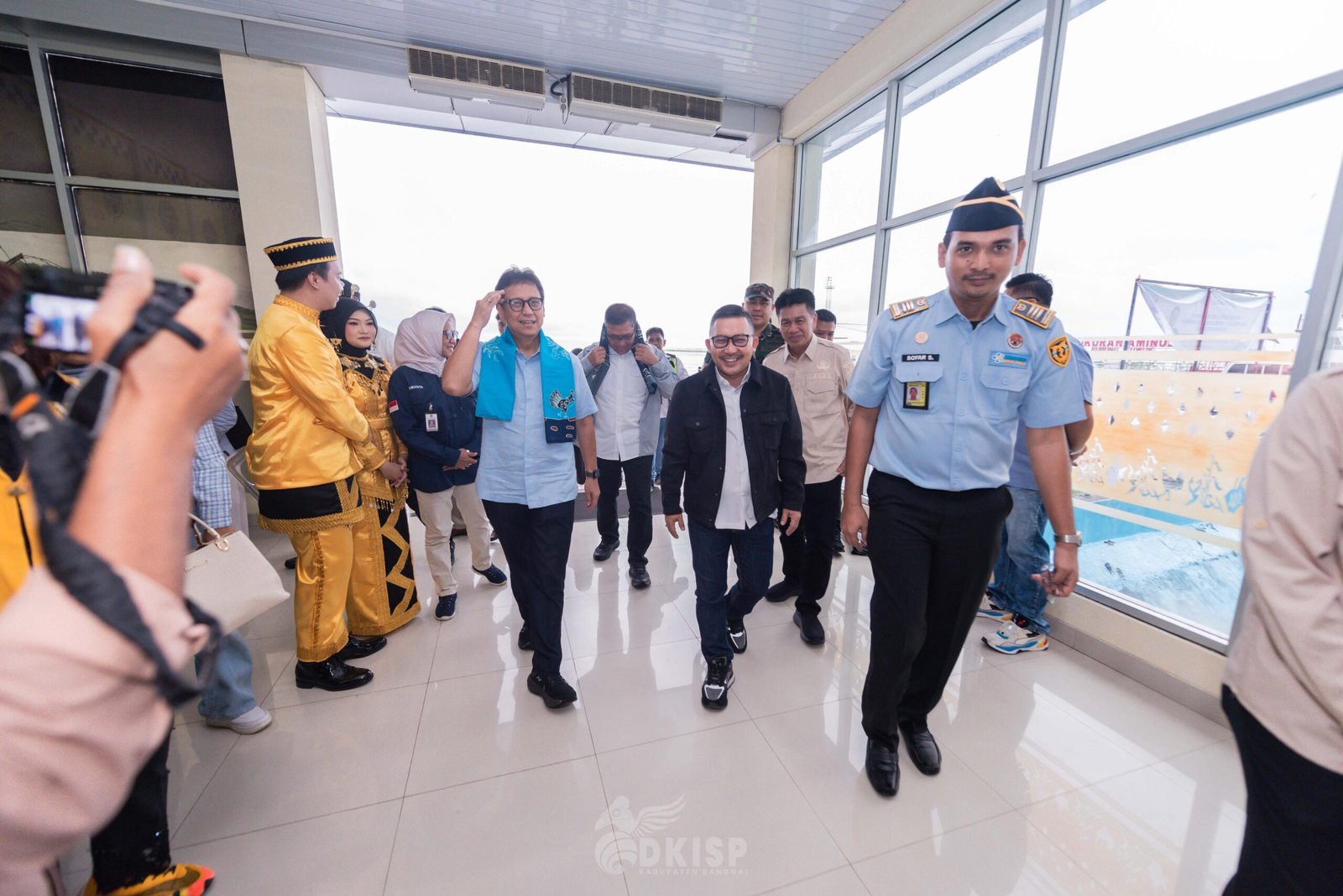 LUWUK ,- Bupati Banggai, Amirudin Tamoreka, bersama Dandim 1308/LB, Letkol Kav. Laode Azhar Hamid, menyambut kedatangan Menteri Kesehatan RI, Budi Gunadi Sadikin, dalam melakukan Kunjungan Kerja ke Kabupaten Taliabu, Provinsi Maluku Utara, di Bandara Syukuran Aminudin Amir Luwuk pada Sabtu (8/3/2025).