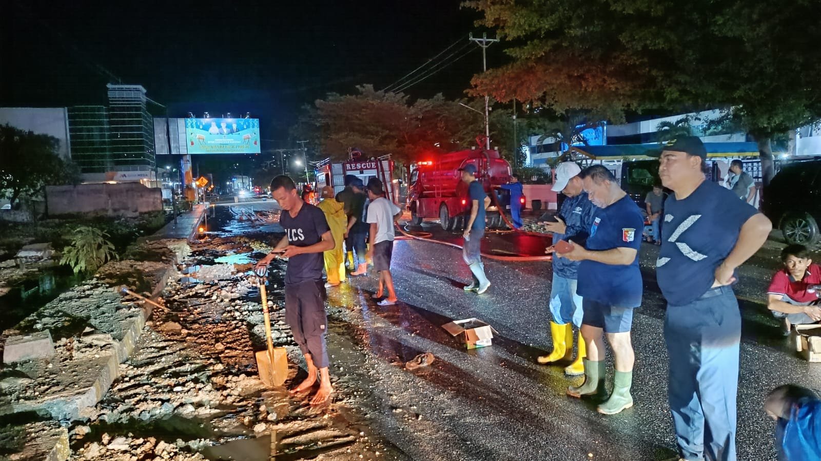 Sebagai langkah awal, Pemda telah menurunkan dua unit mobil pemadam kebakaran (Damkar) serta melakukan penjebolaan trotoar untuk memperlancar aliran air di lokasi eks kebakaran. Selain itu, saluran air yang tersumbat oleh material juga mulai dibersihkan guna mencegah penyumbatan lebih lanjut.