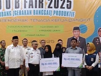 BPJS Ketenagakerjaan Cabang Banggai Luwuk, salurkan santunan kematian sebesar Rp.84.000.000 kepada dua orang ahli waris penerima manfaat BPJS Ketenagakerjaan, dengan masing-masing menerima manfaat sebesar Rp.42.000.000. Penyerahan tersebut dilakukan dalam rangkaian kegiatan Job Fair Gerbang (Gerakan Banggai) Produktif bertajuk “Banggai Bergerak, Tenaga Kerja Bangkit” yang dilaksanakan Dinas Tenaga Kerja dan Transmigrasi Kabupaten Banggai di Gedung Dongkalan Kelurahan Luwuk, Kecamatan Luwuk, pada Rabu (16/07/2025).