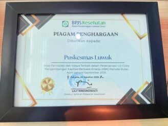 Penghargaan ini didasarkan pada capaian kinerja Puskesmas Simpong dalam memberikan pelayanan kesehatan.