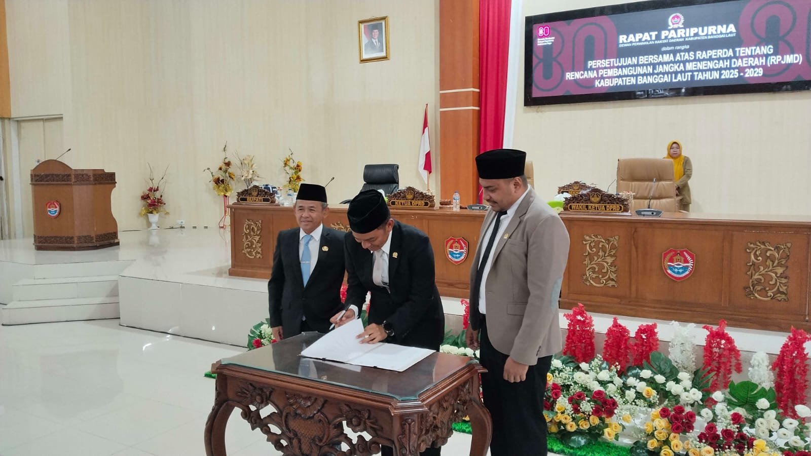 BANGGAI, Dewan Perwakilan Rakyat Daerah (DPRD) Kabupaten Banggai Laut menggelar Rapat Paripurna Persetujuan Bersama Rancangan Peraturan Daerah tentang Rencana Pembangunan Jangka Menengah Daerah (RPJMD) Kabupaten Banggai Laut Tahun 2025-2029, yang di pimpin langsung Ketua DPRD Patwan Kuba paripurna ini di gelar diruang rapat kantor DPRD. Selasa (16/09)