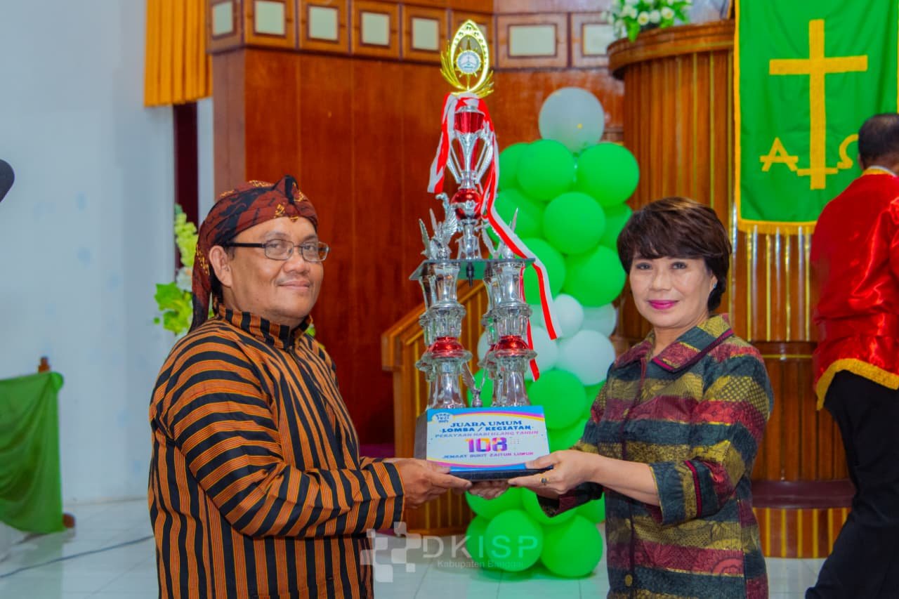 Bupati Banggai yang diwakili oleh Kepala Dinas Perikanan Kabupaten Banggai Ferlin Monggesang menyampaikan ucapan selamat merayakan Hari Ulang Tahun ke-108 bagi jemaat GKLB Bukit Zaitun Luwuk.