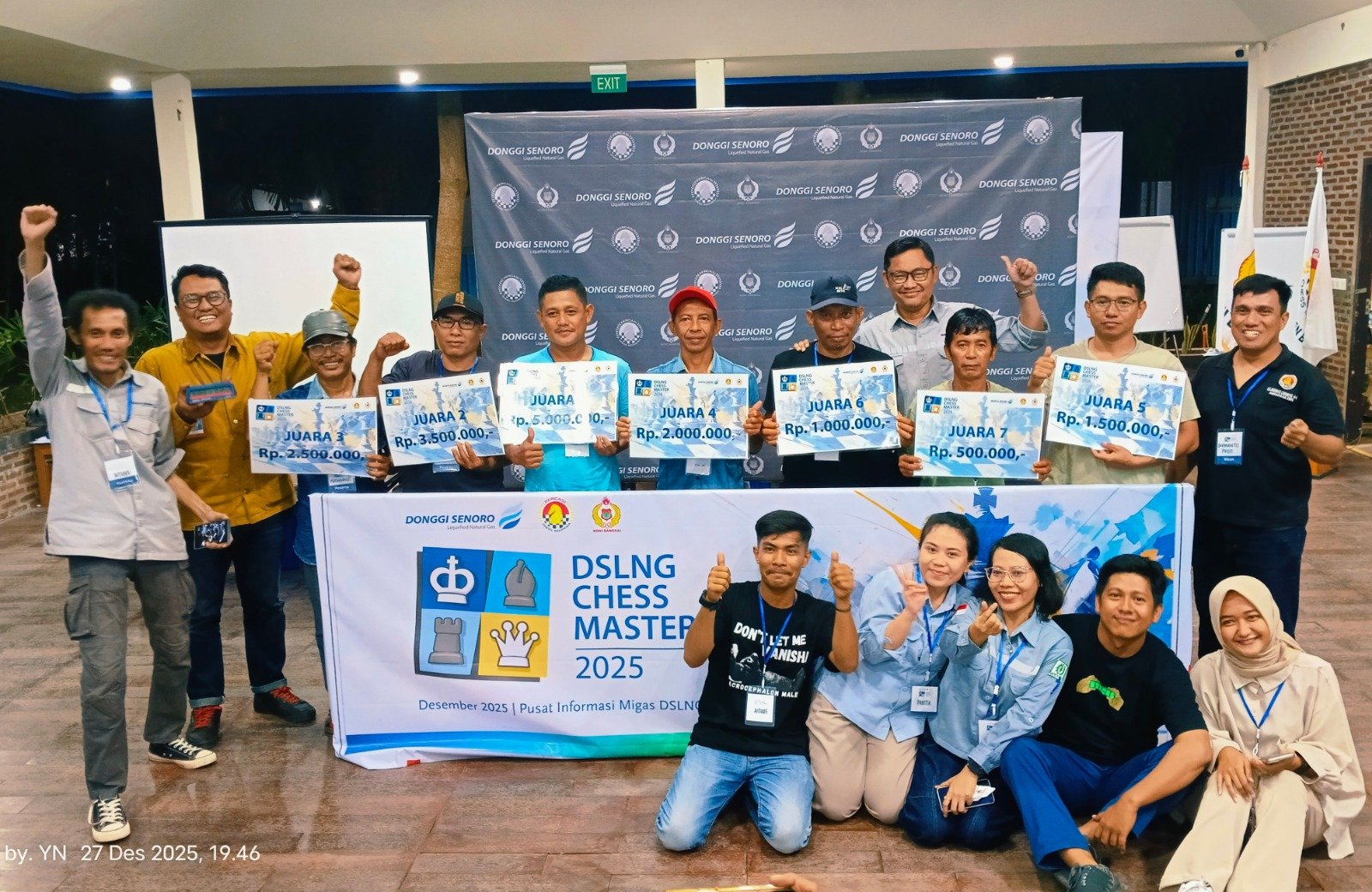 Hadiah pemenang diserahkan langsung oleh Senior Manager Relations & Communication DSLNG Aji Wihardandi bersama Corporate Communication Manager Adhika Paramanandana beserta Sekretaris KONI Kabupaten Banggai Sugiarto Djanun pada penutupan turnamen, Sabtu malam (27/12/2025) lalu.
