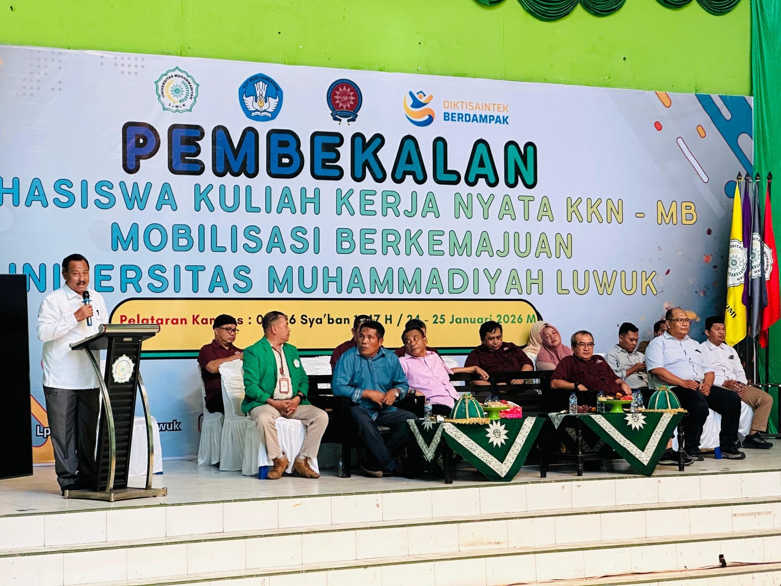 Mewakili Bupati Banggai Ir. Amirudin, Asisten II Bidang Pembangunan dan Perekonomian Masyarakat Sekretariat Daerah Kabupaten Banggai, Mujiono Lasitata, menyampaikan sambutannya pada kegiatan pembekalan Kuliah Kerja Nyata–Mobilisasi Berkemajuan (KKN-MB) Angkatan ke-39 Tahun Akademik 2026.