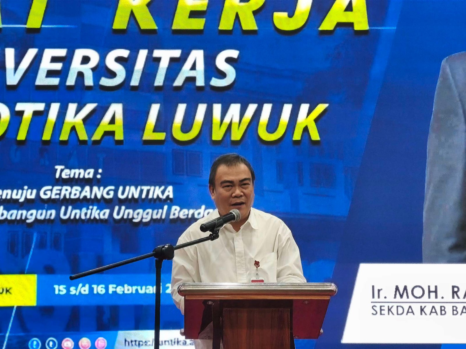 Sekretaris Daerah (Sekda) Kabupaten Banggai Moh. Ramli Tongko mewakili Bupati Banggai Amirudin secara resmi membuka Rapat Kerja Universitas Tompotika Luwuk Tahun 2026, Minggu (15/2).