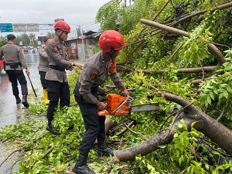 Ditsamapta Polda Sulteng Gercep Bantu Warga Singkirkan Pohon Tumbang